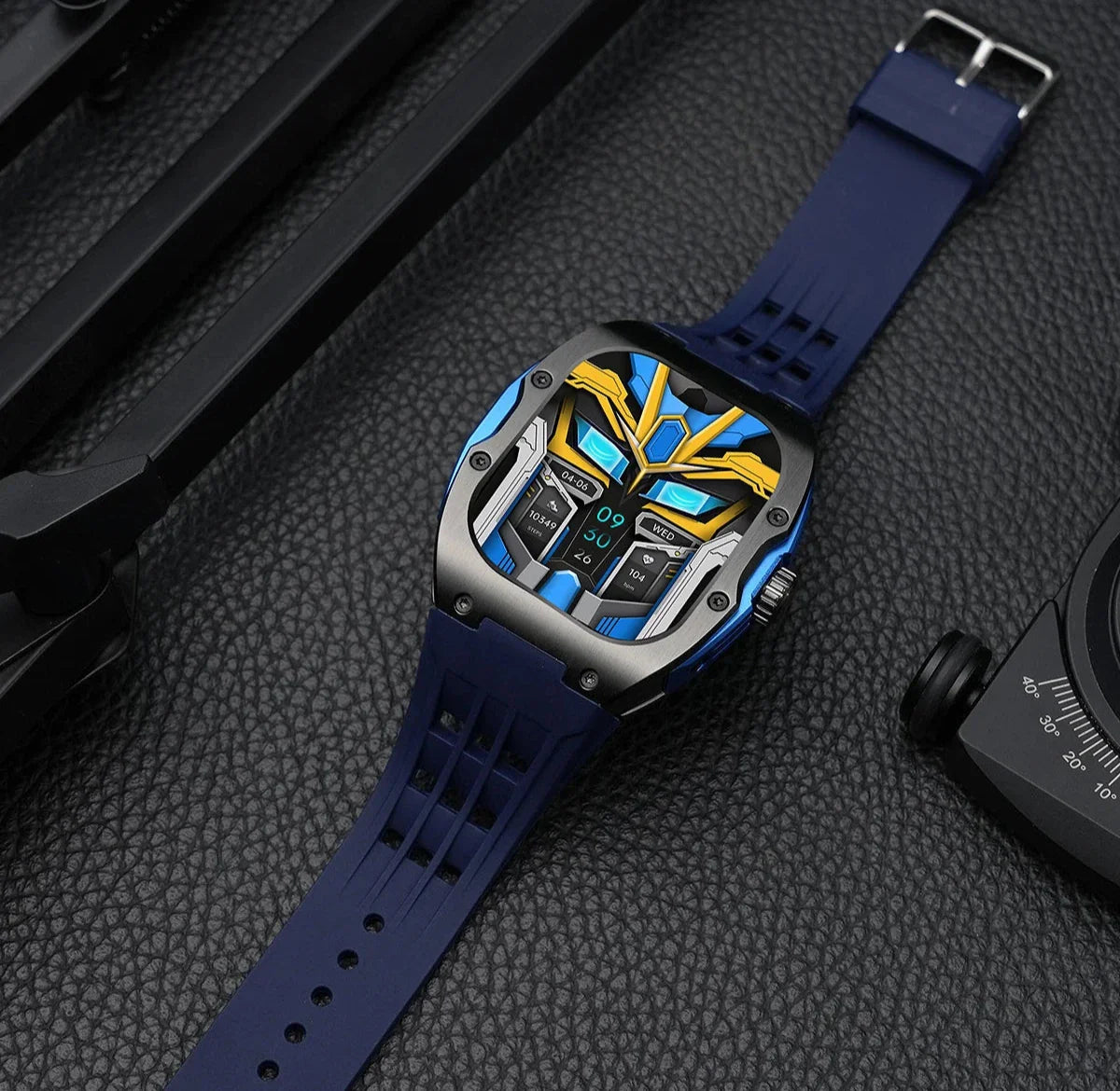 This robust smartwatch combines mechanical intricacy with modern features. With a Realtek 8763 chip, a powerful 400mAh battery, and magnetic charging, it provides seamless connectivity through Bluetooth 5.1. Its sporty design boasts a bold 45mm carbon body, offering multi-sport modes, heart rate tracking, and personalized alerts in one sophisticated package.