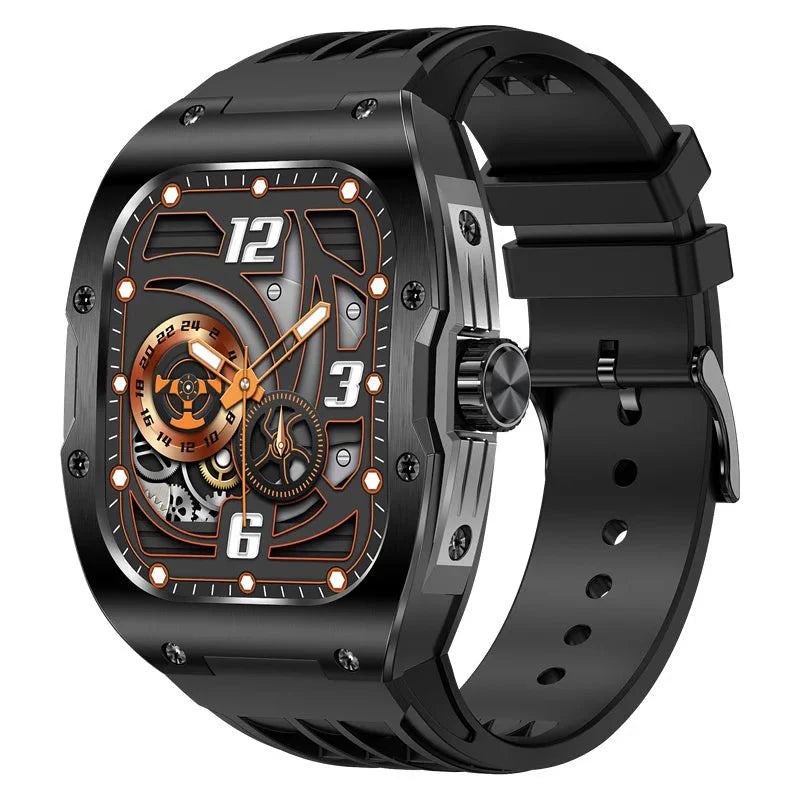 Unleash the power of precision with this cutting-edge mechanical carbon watch. Equipped with a stunning 1.952-inch AMOLED display, Bluetooth calling, multi-sport modes, and health monitoring, it's designed for both style and performance. Experience the future with weather forecasts, rotary button controls, and dynamic heart rate monitoring, all in a sleek, carbon fiber design.