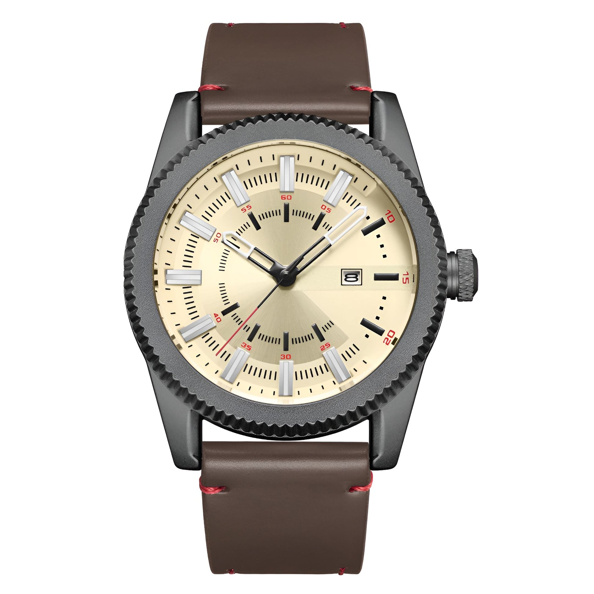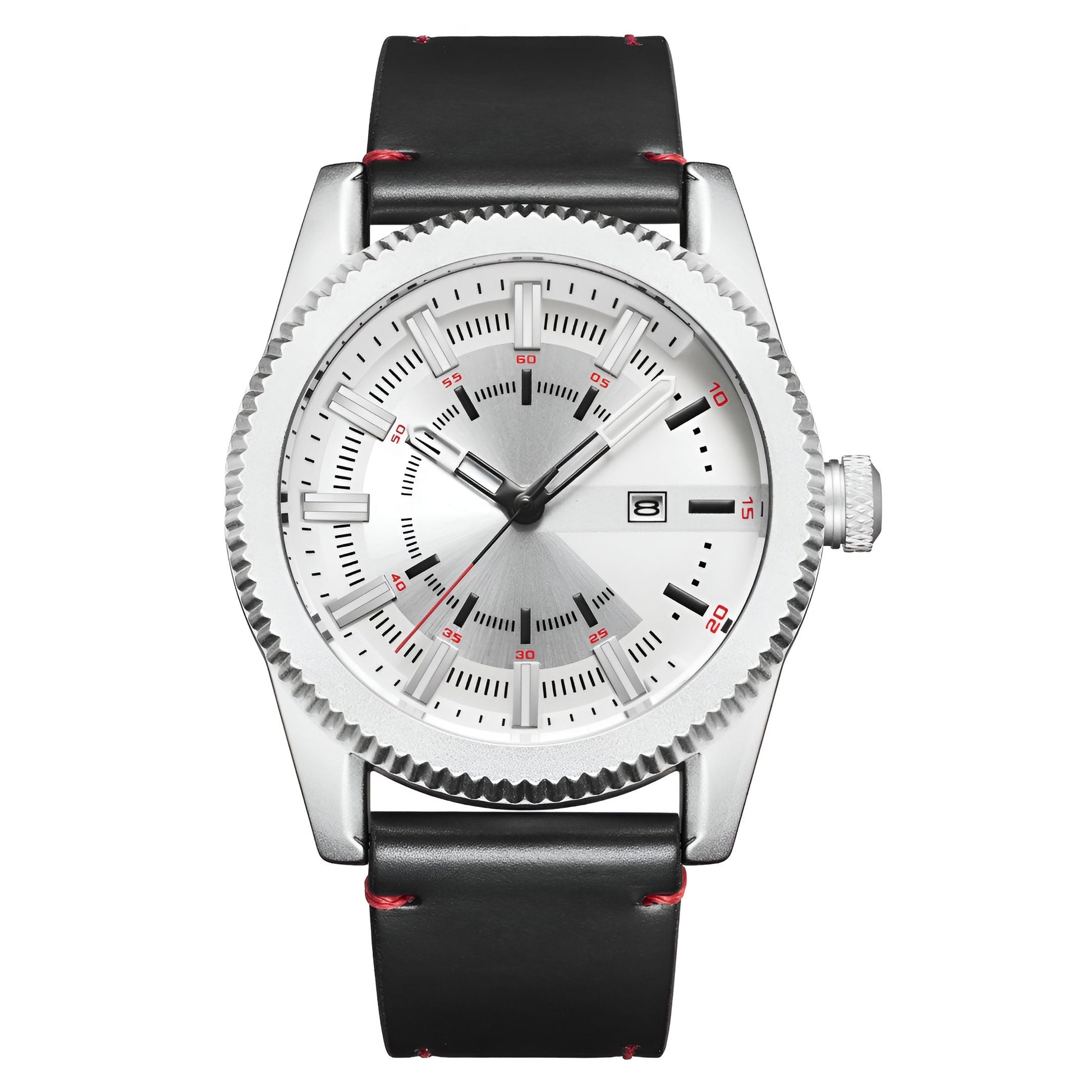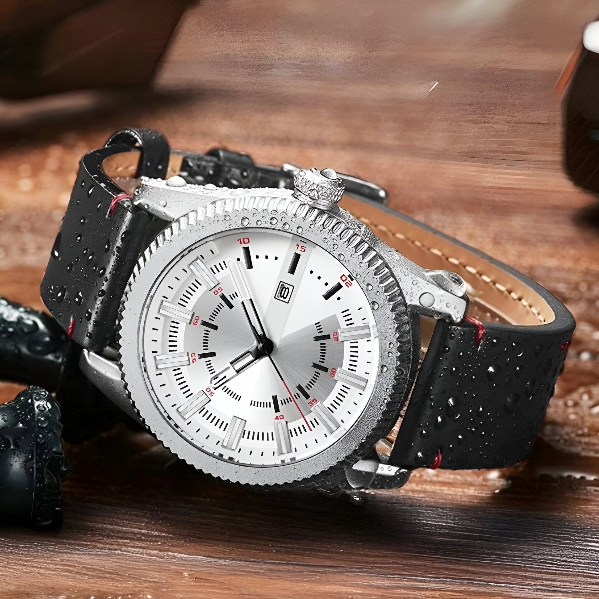 • Materials: Stainless Steel case, Leather strap, 3 Bar water resistance