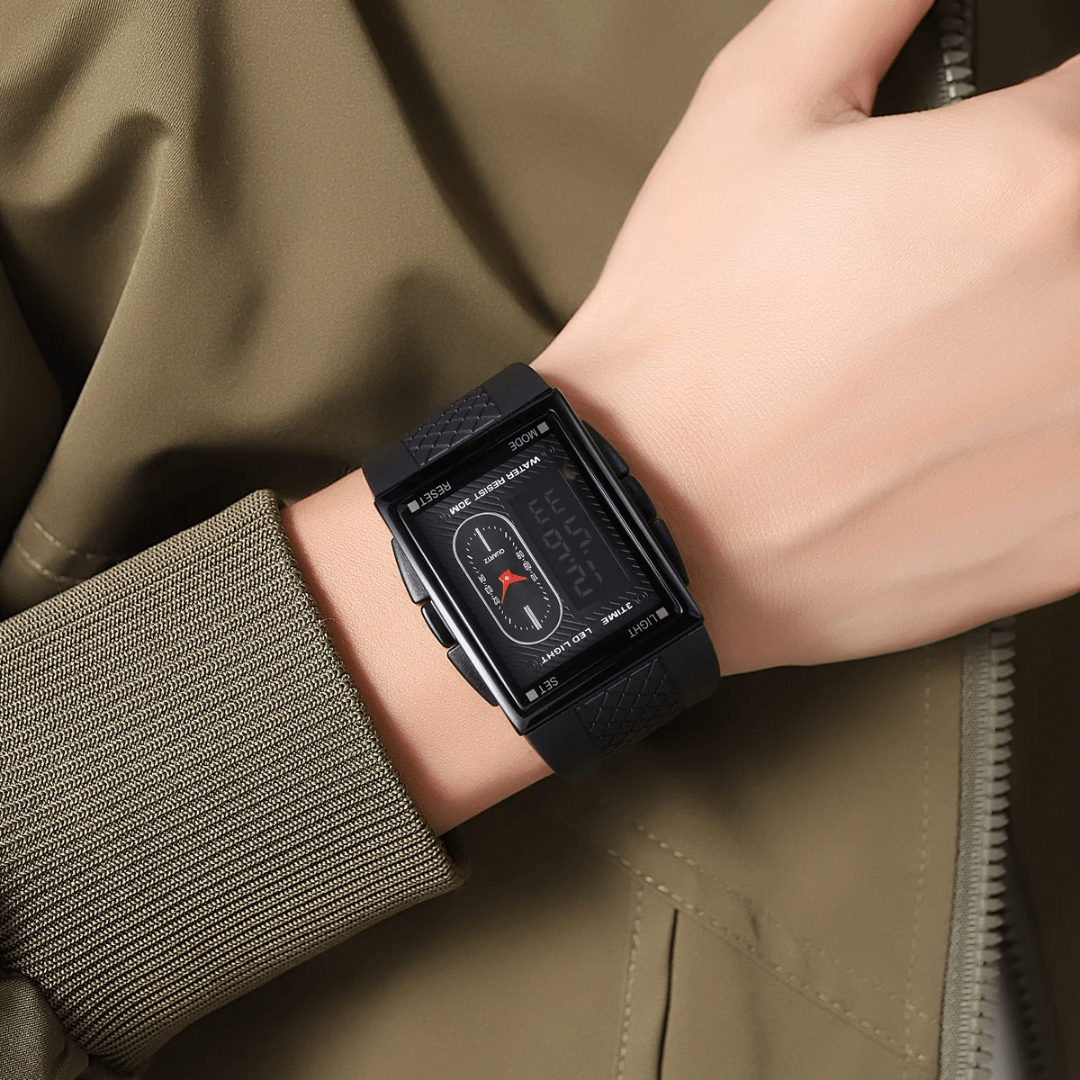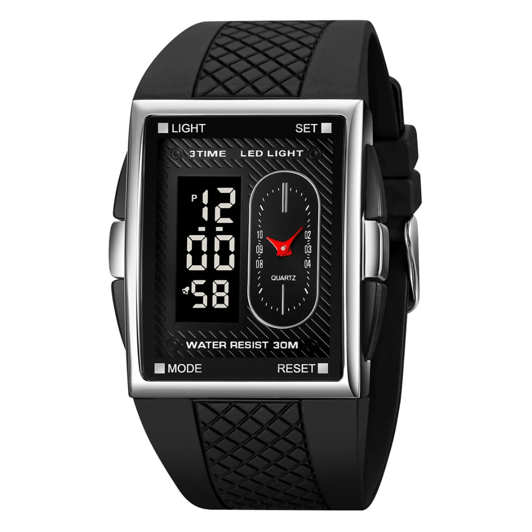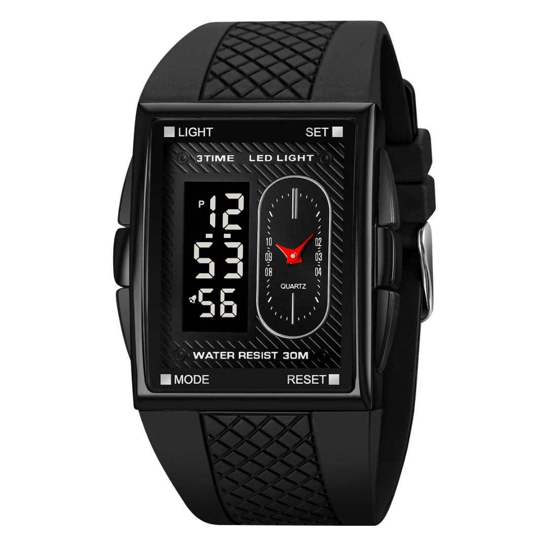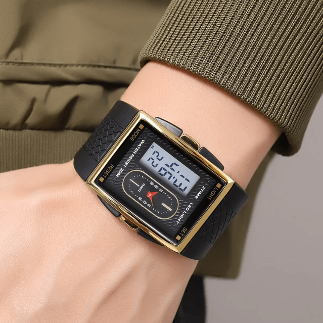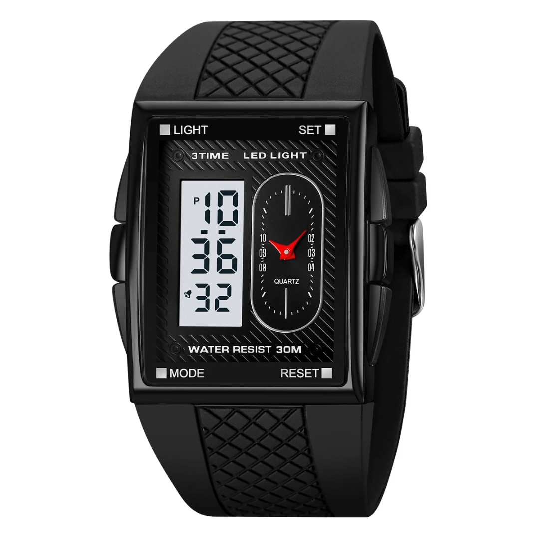 The ALTRA Watch combines sleek fashion with practical functionality. Designed with a durable alloy case and a rectangle shape, it features an analog-digital display for a modern edge. The silicone band, measuring 24cm in length and 33mm in width, ensures a comfortable fit. This fashion & casual timepiece boasts essential features like a chronograph, backlight, shock resistance, a complete calendar, alarm, and week display. The glass dial window protects the 40mm dial, and its 3Bar water resistance adds practicality. Secured with a classic buckle clasp, the ALTRA Watch is built to impress while keeping you on time.