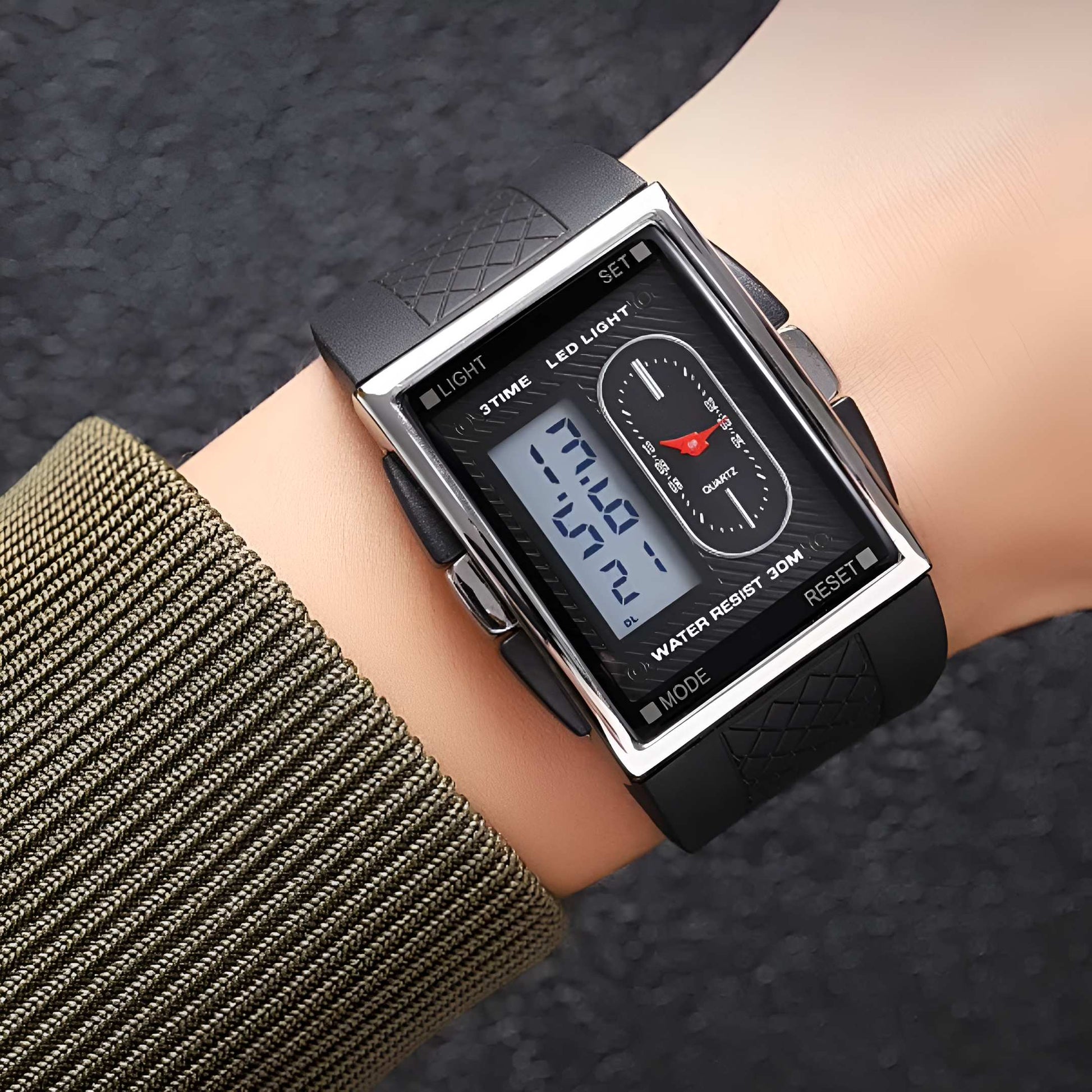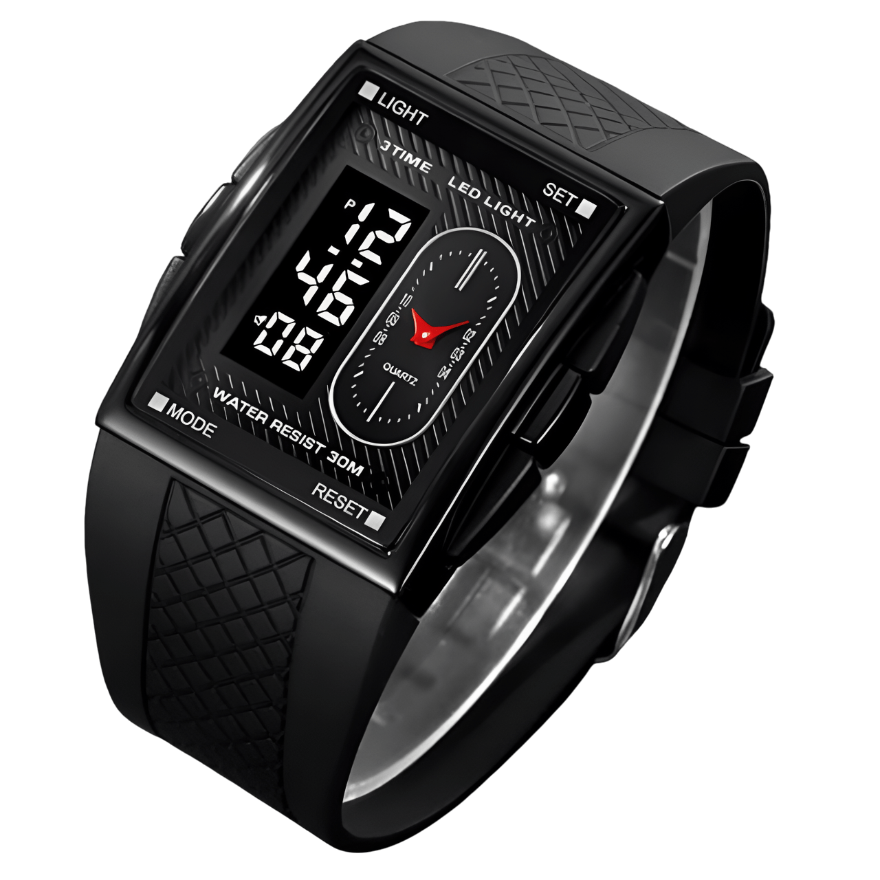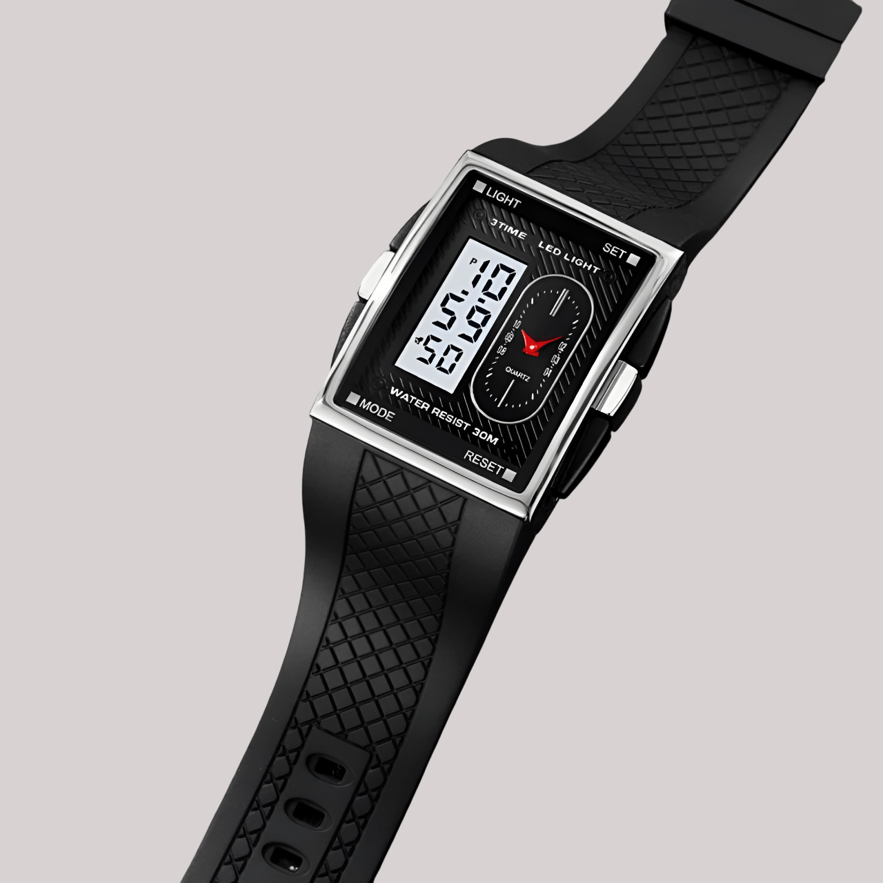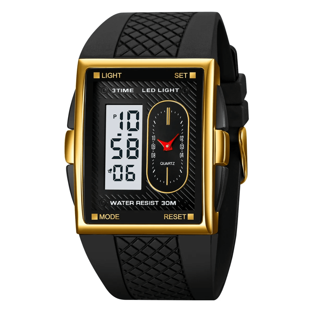 The ALTRA Watch combines sleek fashion with practical functionality. Designed with a durable alloy case and a rectangle shape, it features an analog-digital display for a modern edge. The silicone band, measuring 24cm in length and 33mm in width, ensures a comfortable fit. This fashion & casual timepiece boasts essential features like a chronograph, backlight, shock resistance, a complete calendar, alarm, and week display. The glass dial window protects the 40mm dial, and its 3Bar water resistance adds practicality. Secured with a classic buckle clasp, the ALTRA Watch is built to impress while keeping you on time.