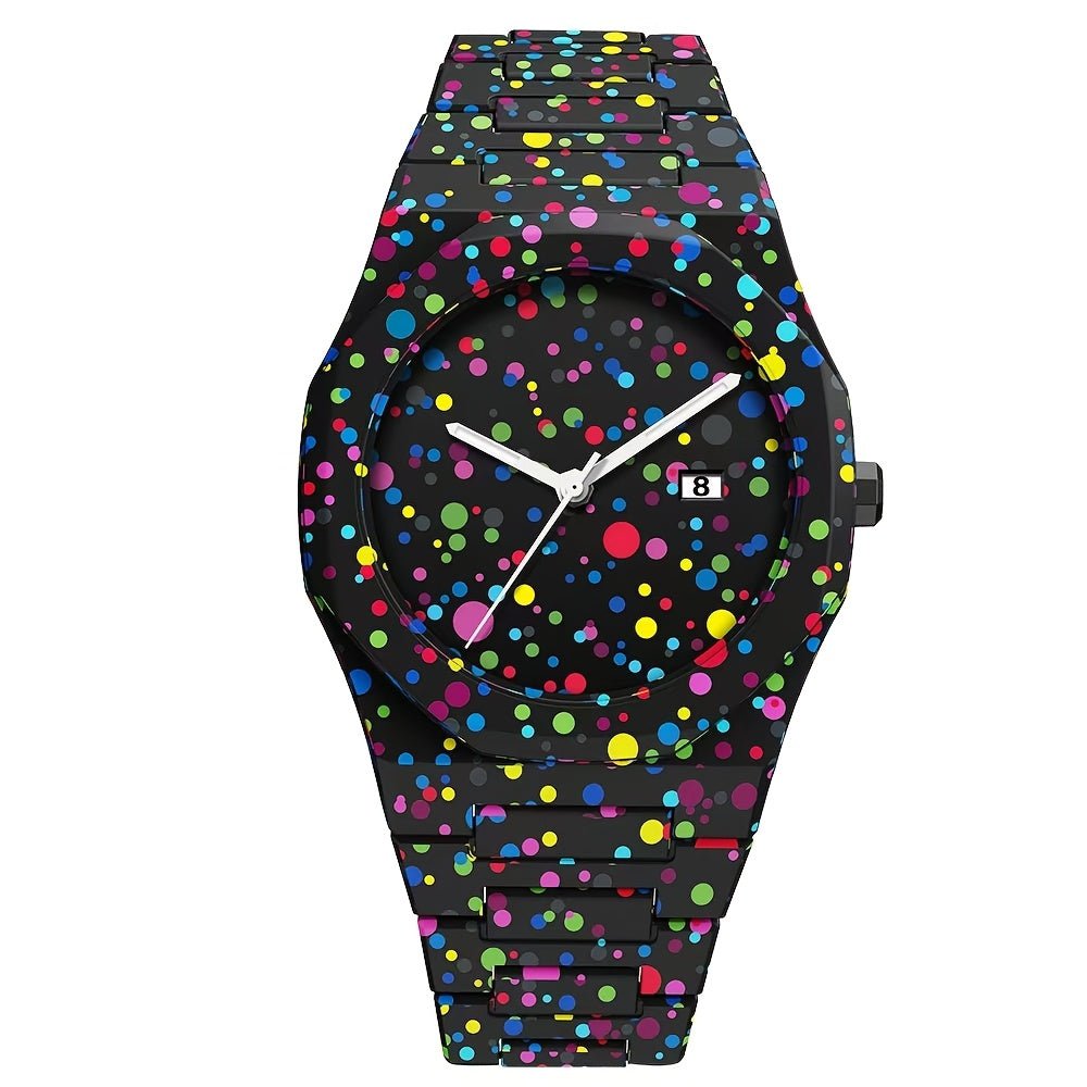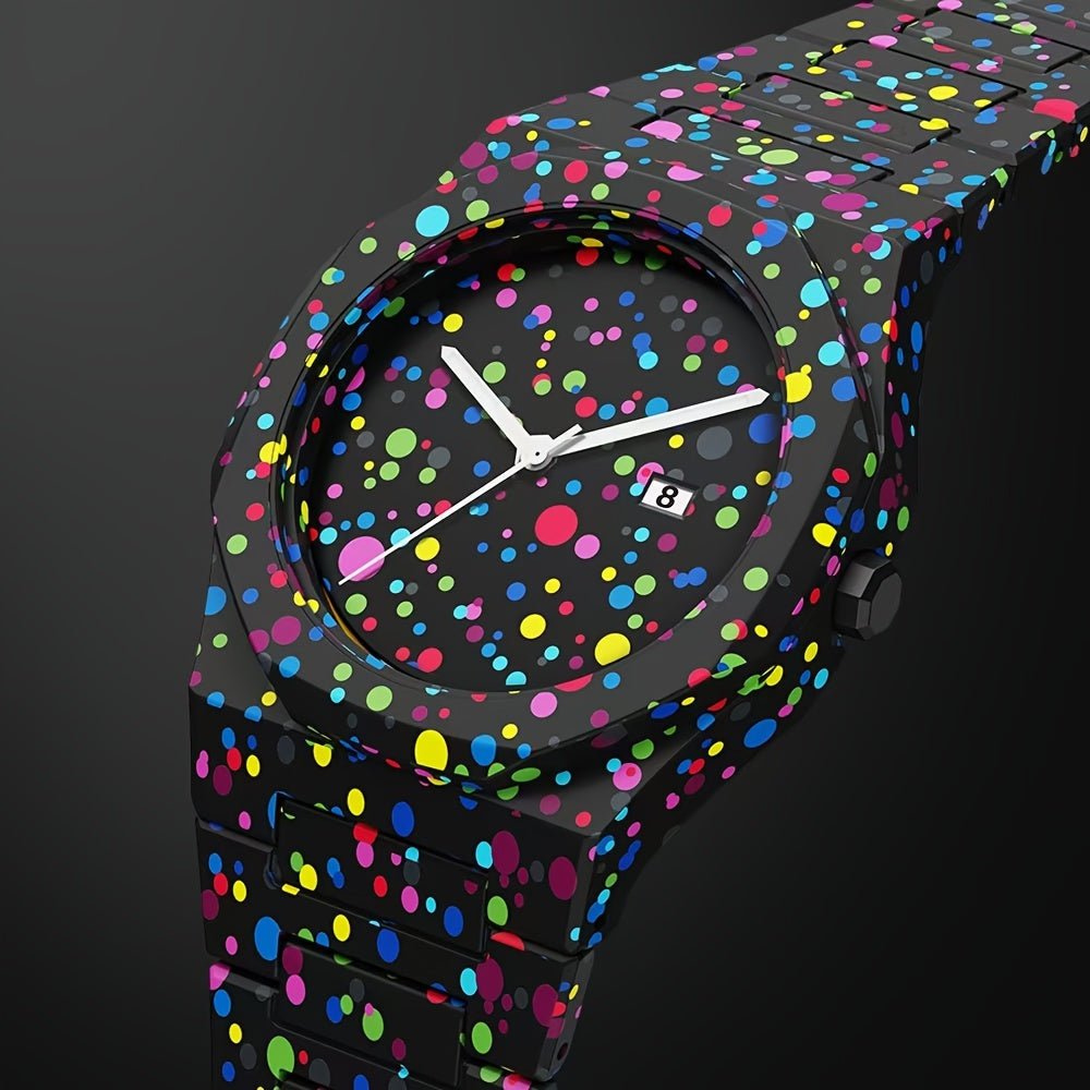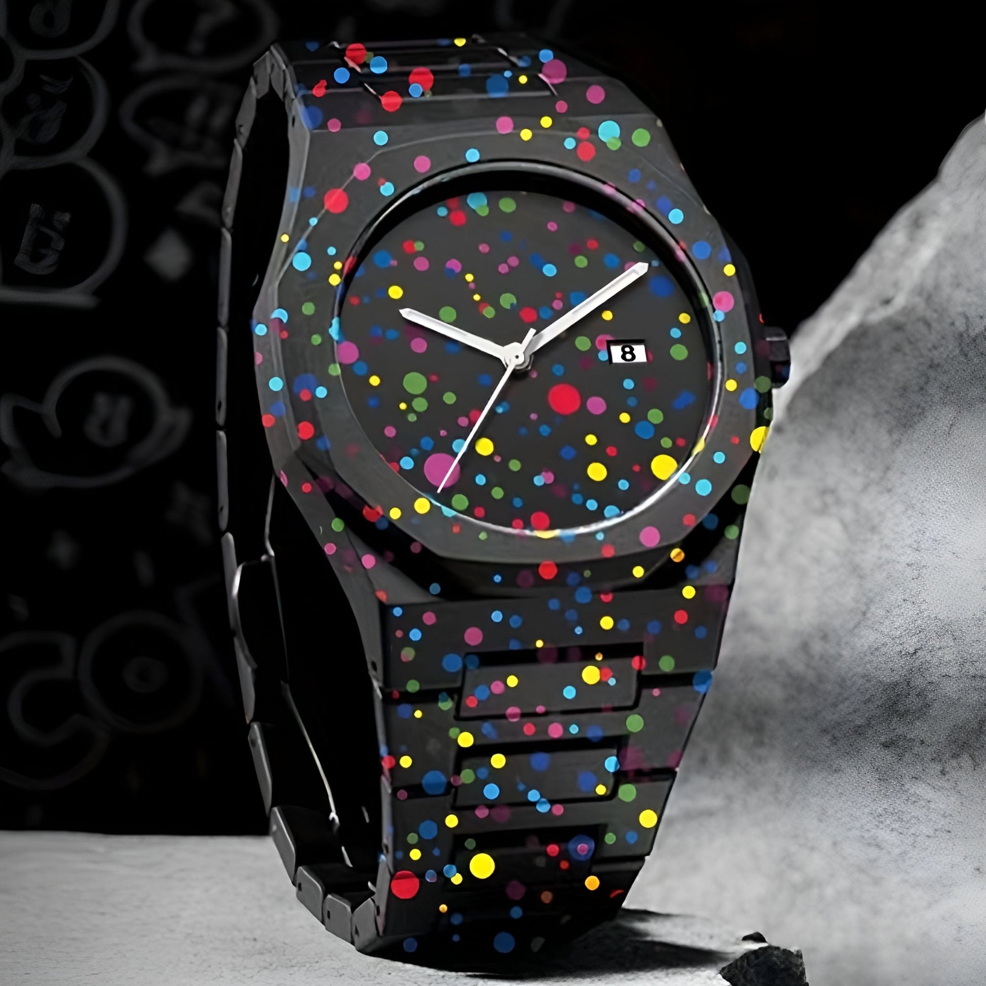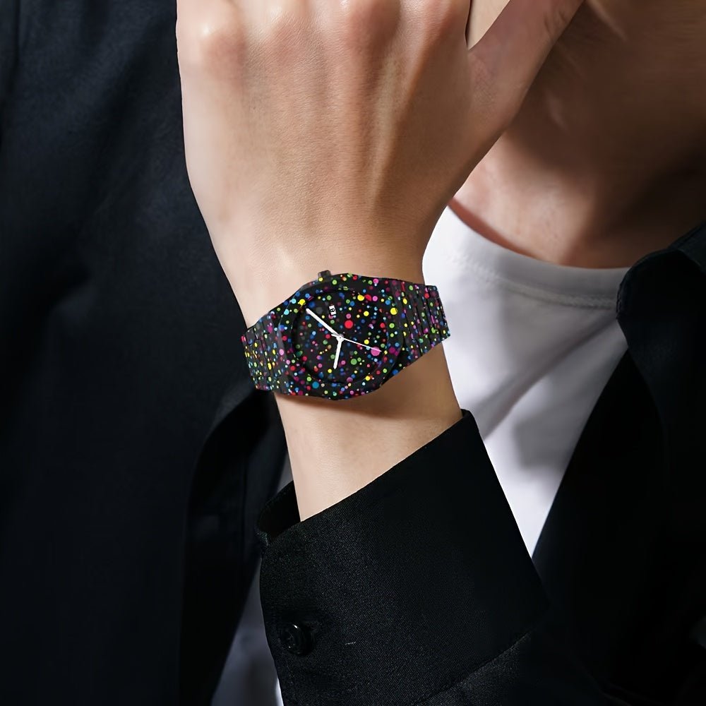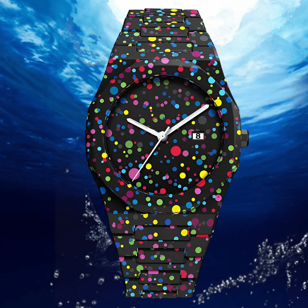 This watch is a stunning fusion of contemporary art and cutting-edge design, offering exceptional quality, comfort, and durability. Its bold, vibrant patterns on sleek black or white backgrounds make it a true statement piece, perfect for any occasion. Lightweight and crafted with precision, it combines elegance, functionality, and individuality in one remarkable timepiece.