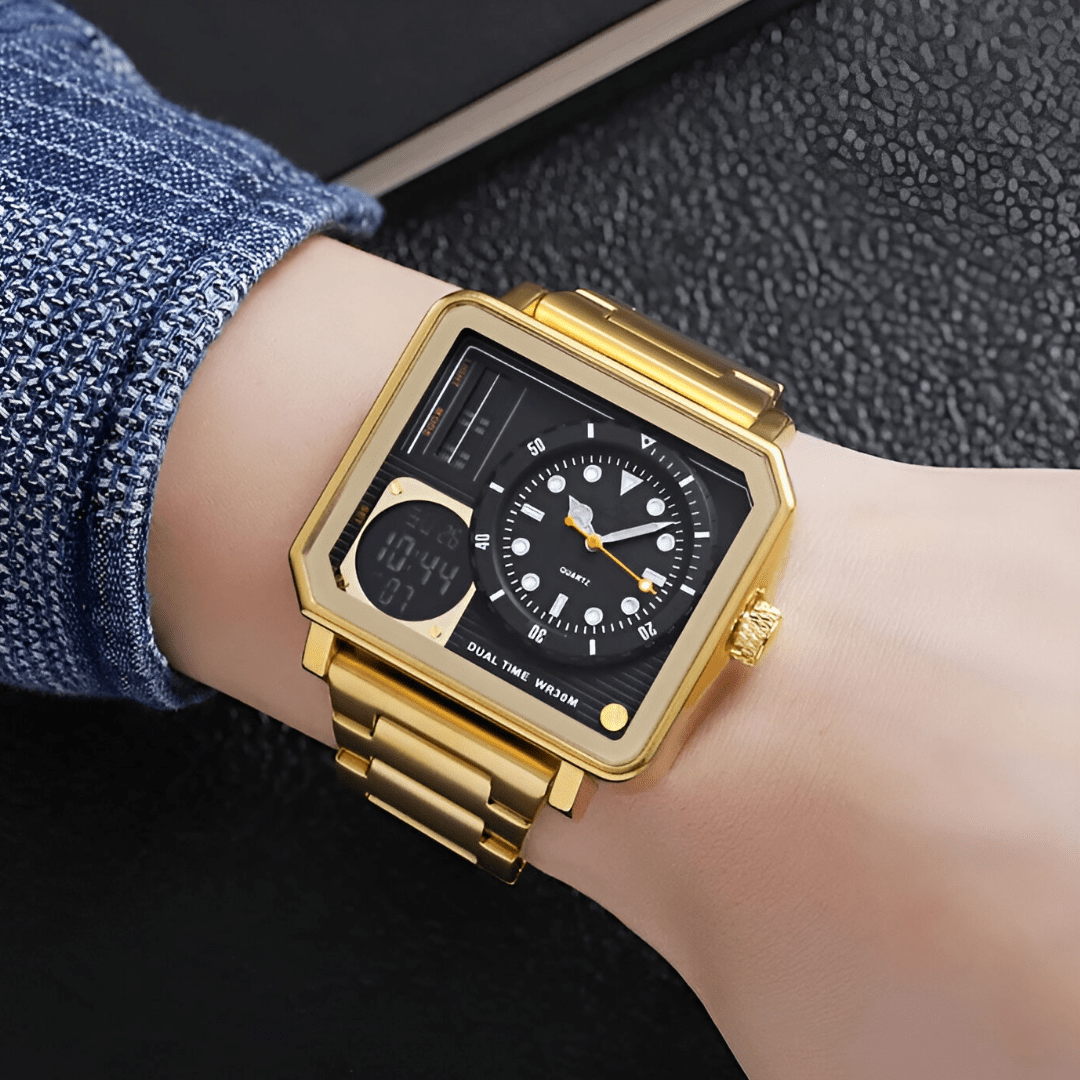 The Draxon digital watch merges a rugged, modern look with robust functionality, ideal for active lifestyles. Its alloy case and unique irregular shape stand out, while a stainless steel band with a secure folding clasp ensures lasting durability. With 3Bar water resistance, a crisp digital display, and convenient week display, Draxon keeps you on track wherever you go. The bold 48.1mm dial and 24mm band width make a statement, offering a fusion of style and sport that’s ready for any adventure.