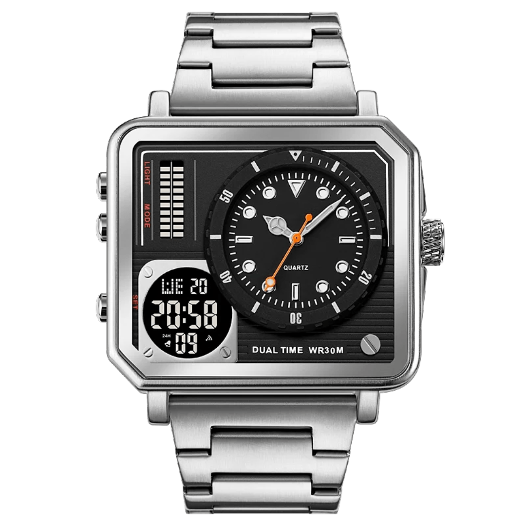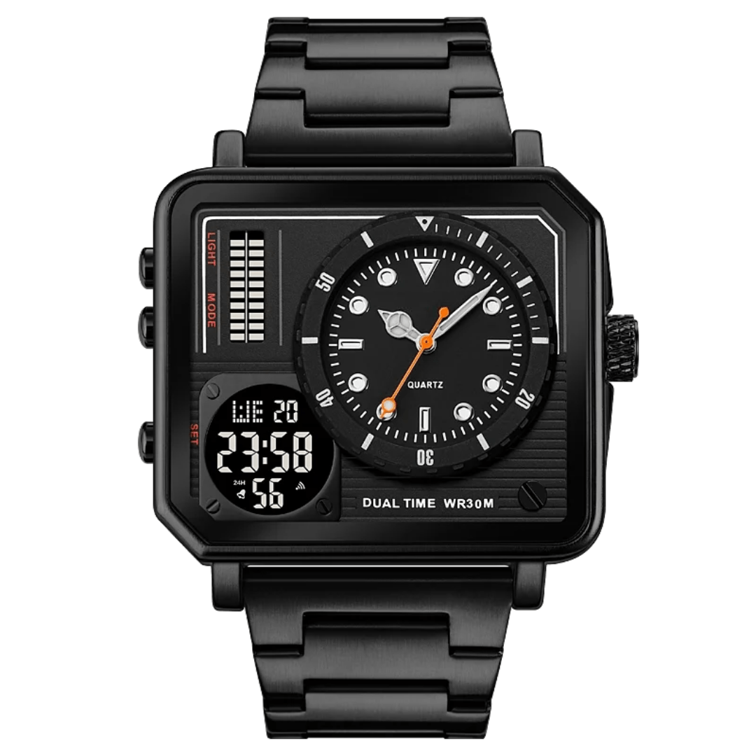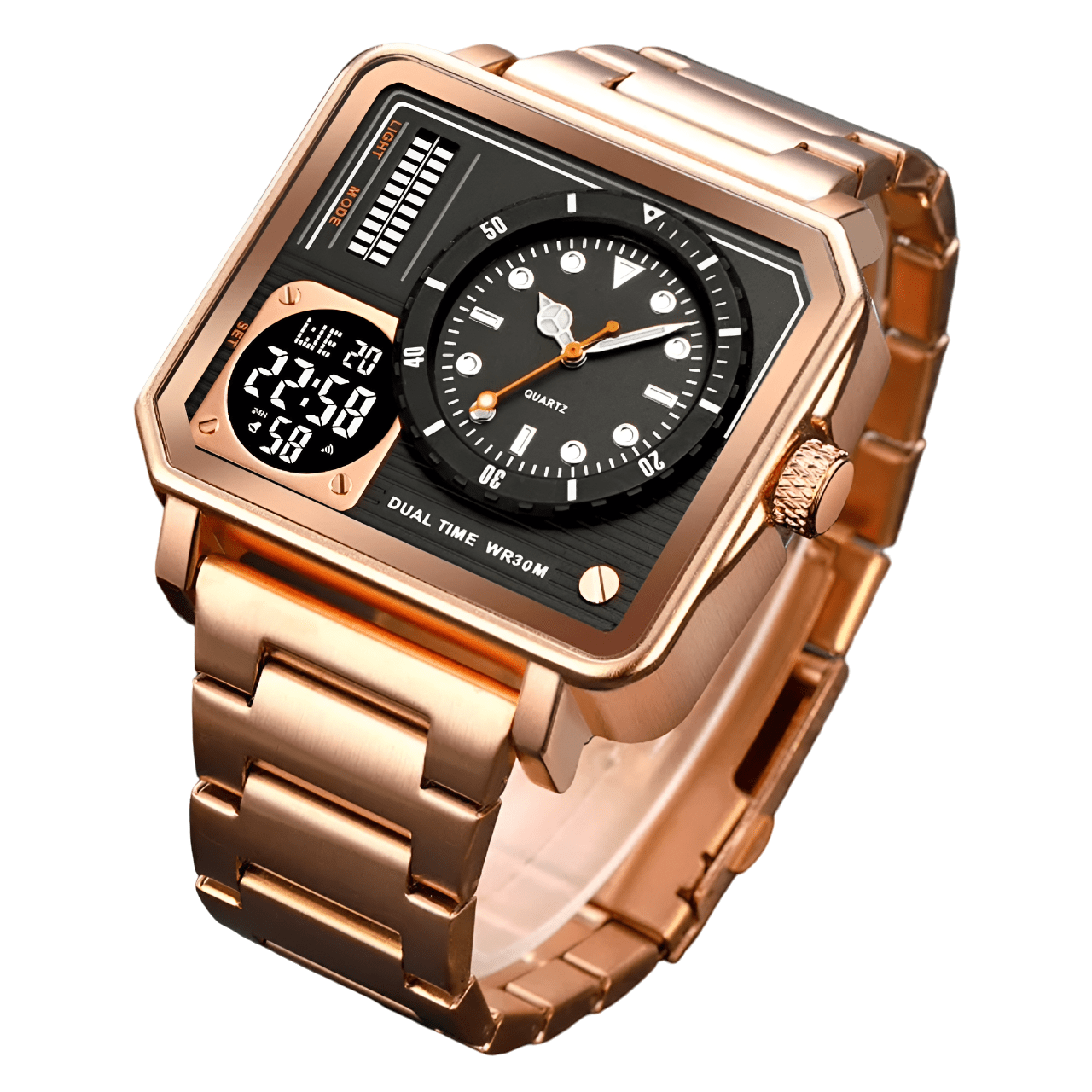 The Draxon digital watch merges a rugged, modern look with robust functionality, ideal for active lifestyles. Its alloy case and unique irregular shape stand out, while a stainless steel band with a secure folding clasp ensures lasting durability. With 3Bar water resistance, a crisp digital display, and convenient week display, Draxon keeps you on track wherever you go. The bold 48.1mm dial and 24mm band width make a statement, offering a fusion of style and sport that’s ready for any adventure.