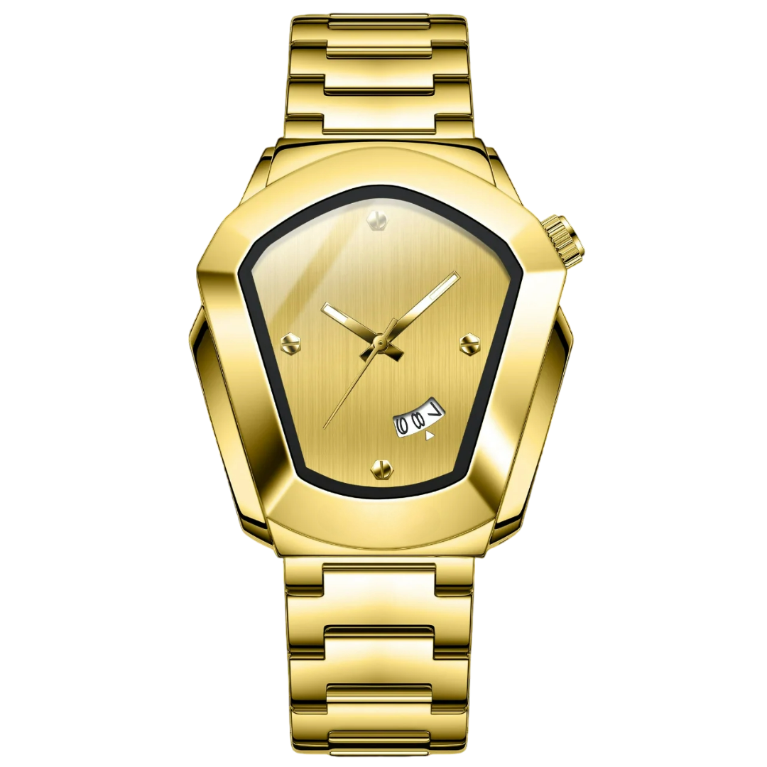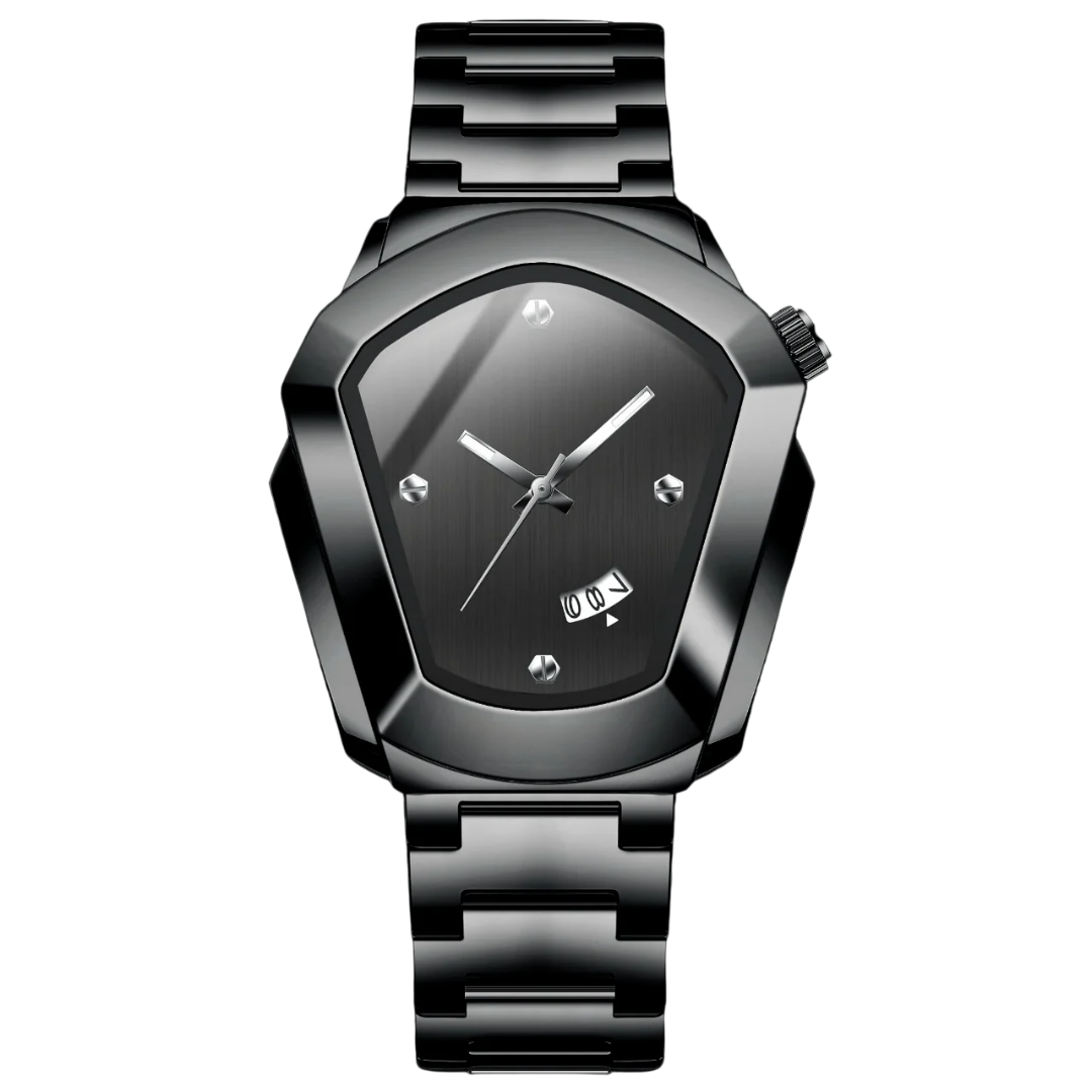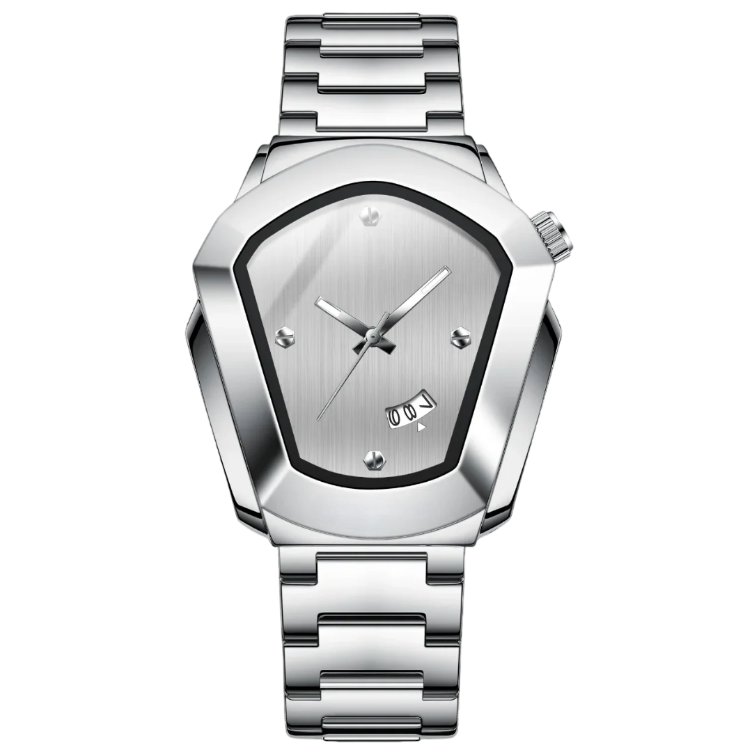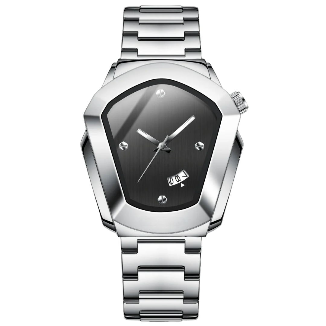 This timepiece dares to challenge the ordinary with a design that instantly catches the eye. Its unconventional silhouette, minimalist dial, and refined detailing create a bold presence on the wrist. The integrated date feature adds a practical touch, perfectly complementing the watch’s striking allure and refined geometry.