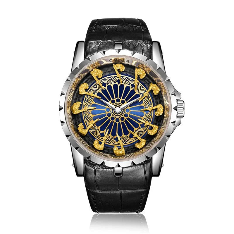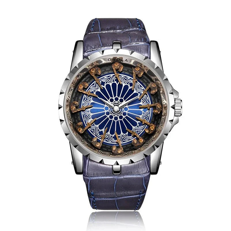 This timepiece is a harmonious fusion of elegance and artistry. Its intricate dial, inspired by stained-glass motifs, radiates a sense of timeless beauty. The gold or silver accents and meticulously designed details symbolize the culmination of centuries of watchmaking expertise, delivering a wearable piece of art that reflects sophistication at every glance.