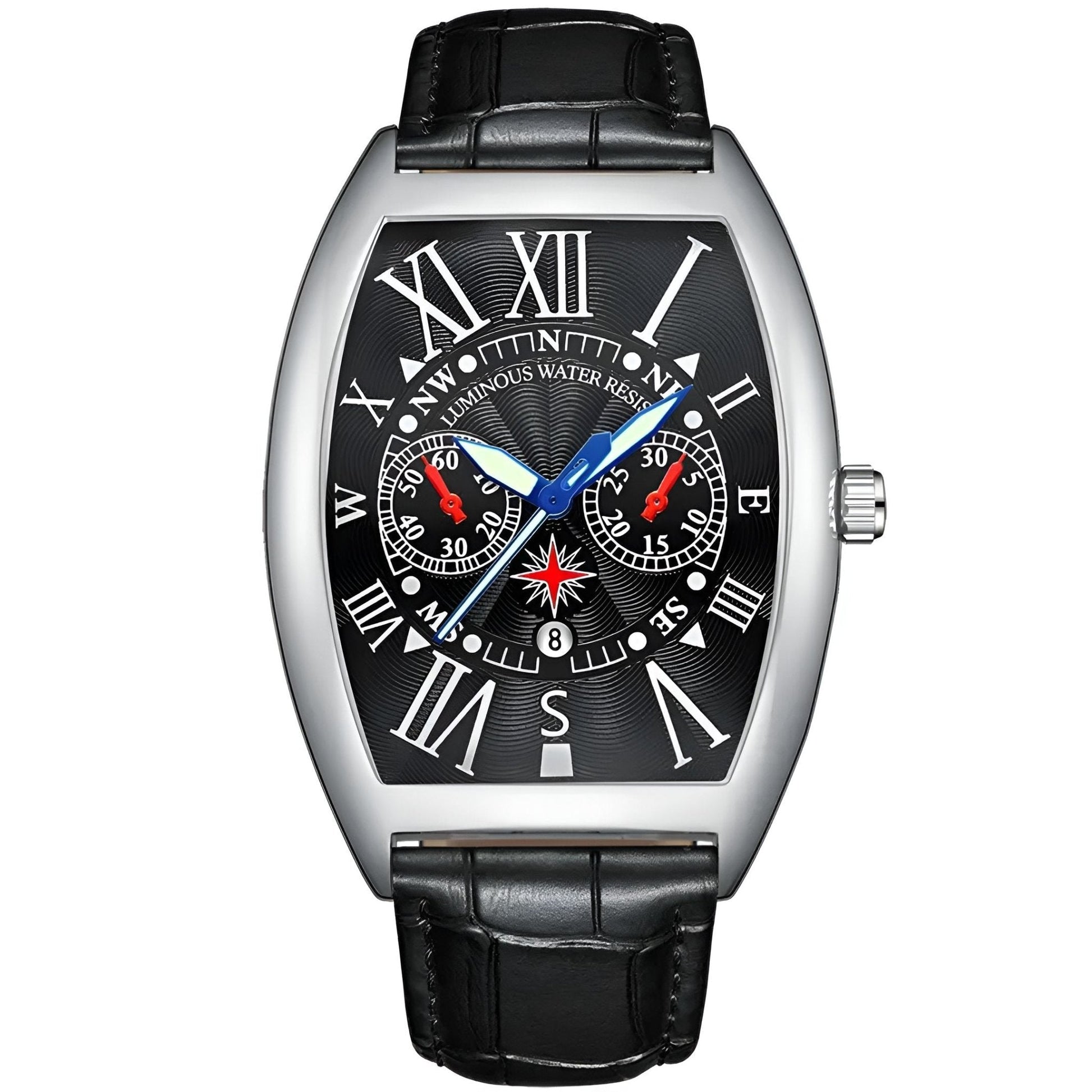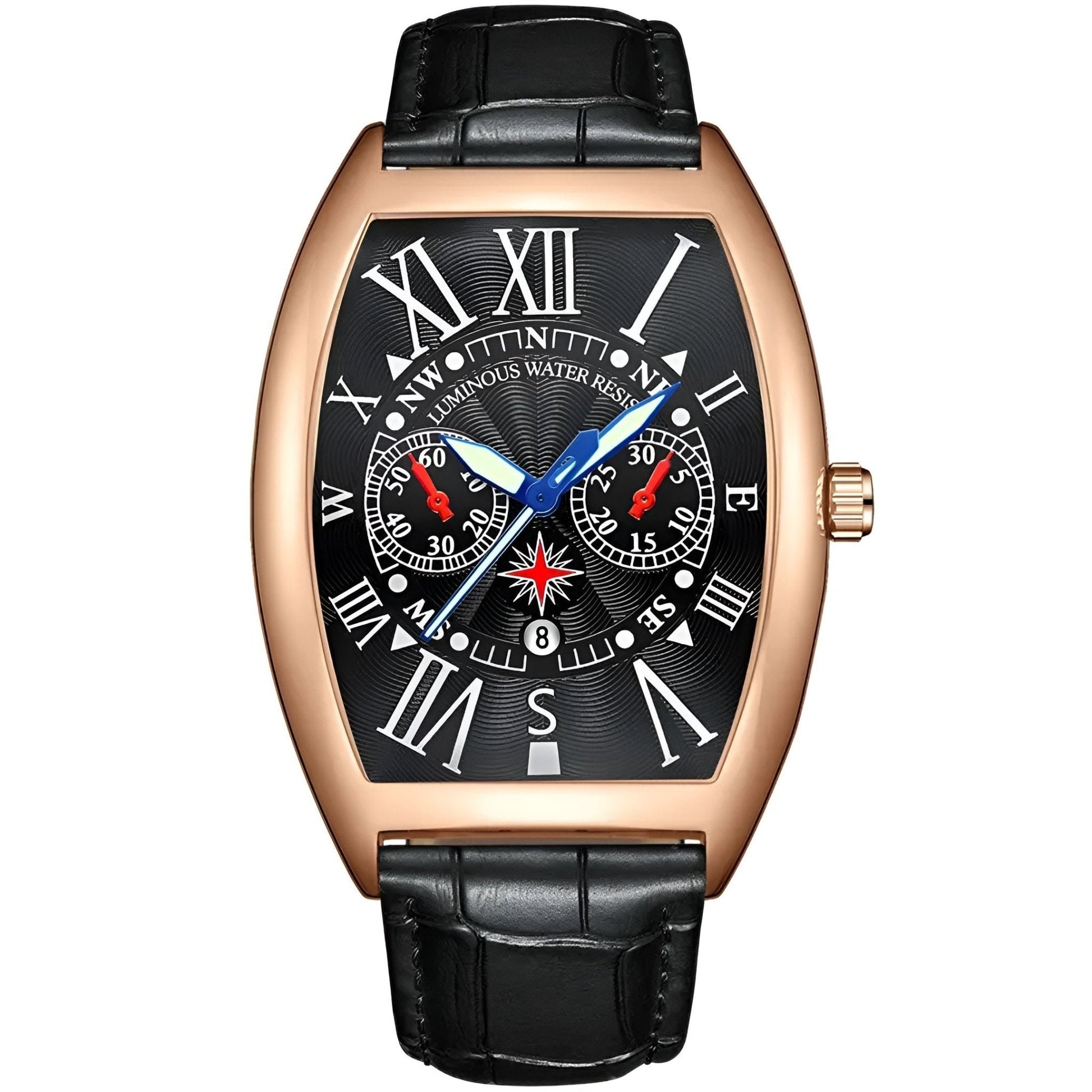 • Materials: Stainless Steel case, Leather strap, 3 Bar water resistance