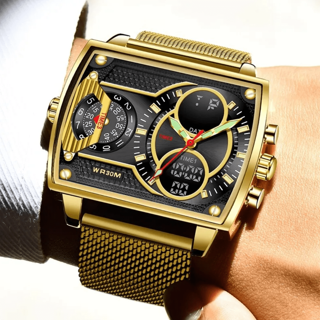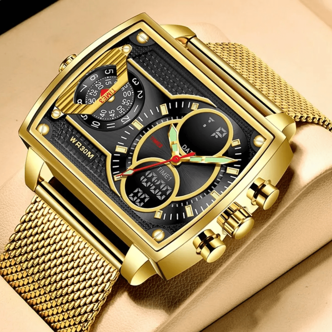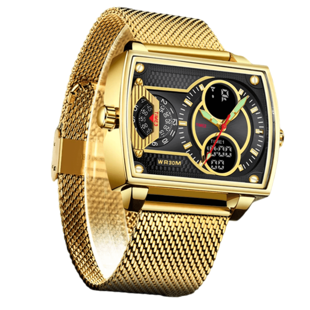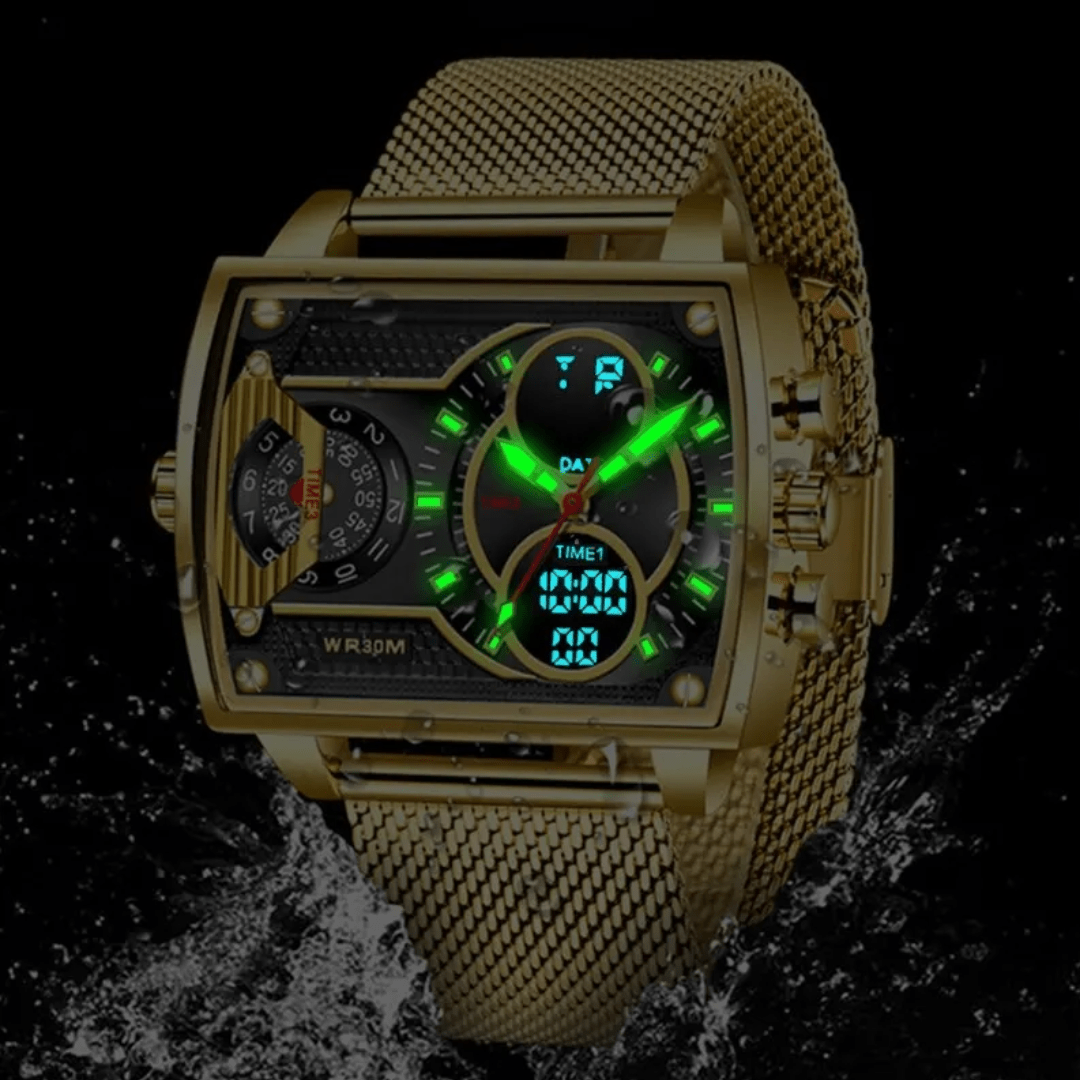 Introducing Nexify – a bold, stylish timepiece that fuses durability with cutting-edge functionality. Designed with a square stainless steel case and 47mm dial diameter, Nexify stands out with its dual display, combining quartz precision and digital ease for versatile, reliable timekeeping.
