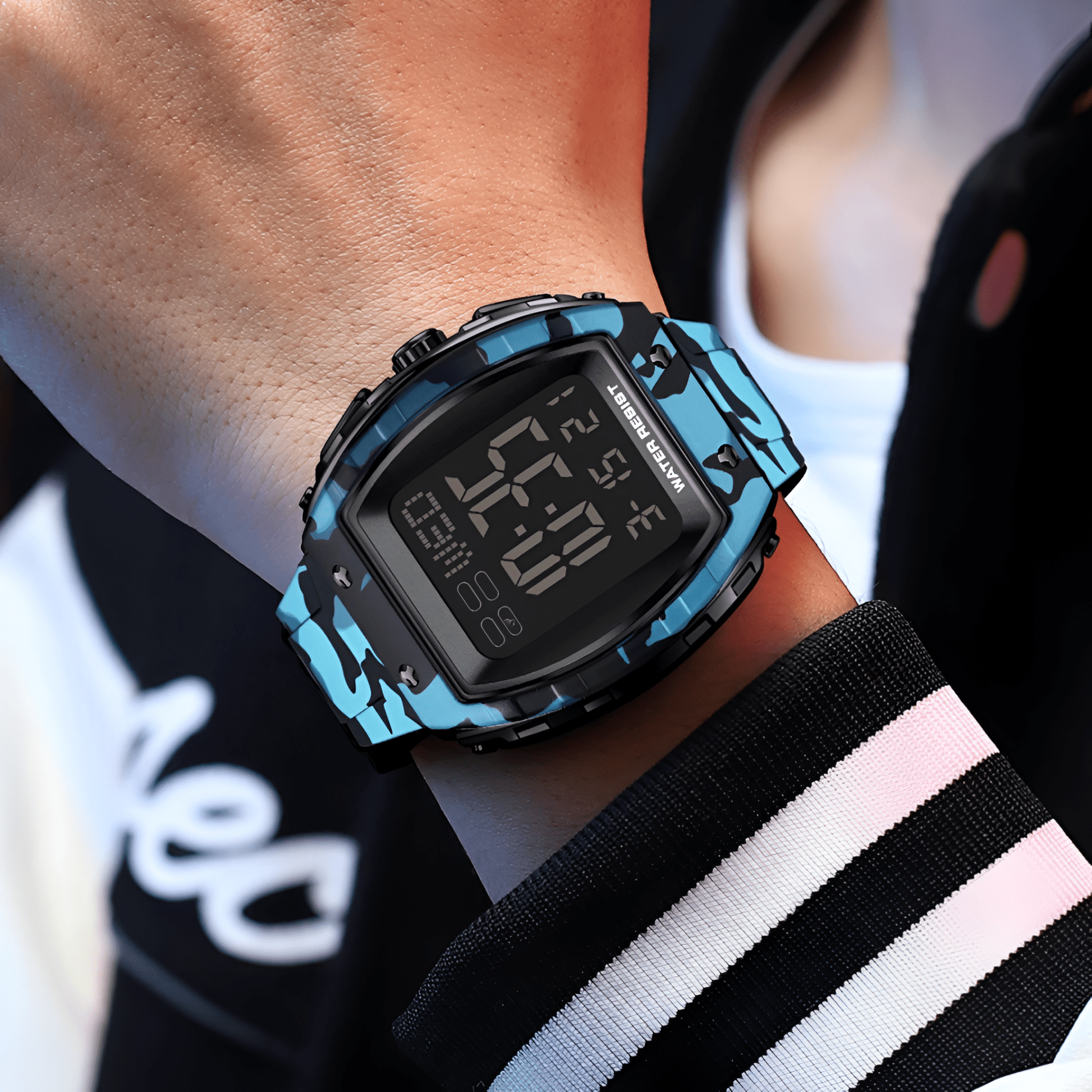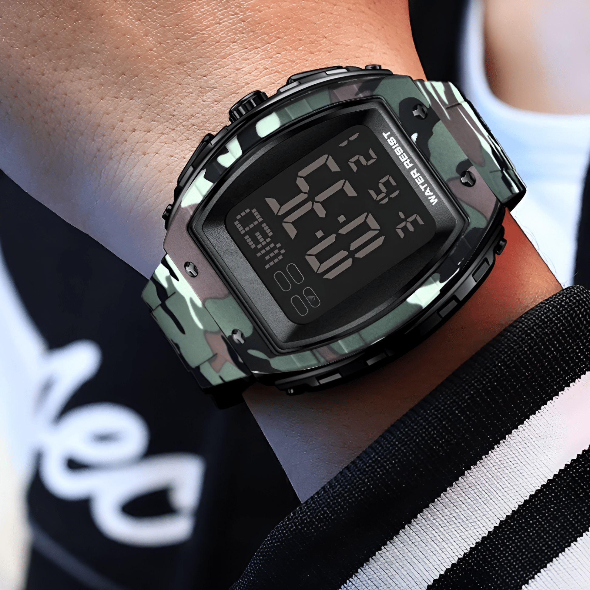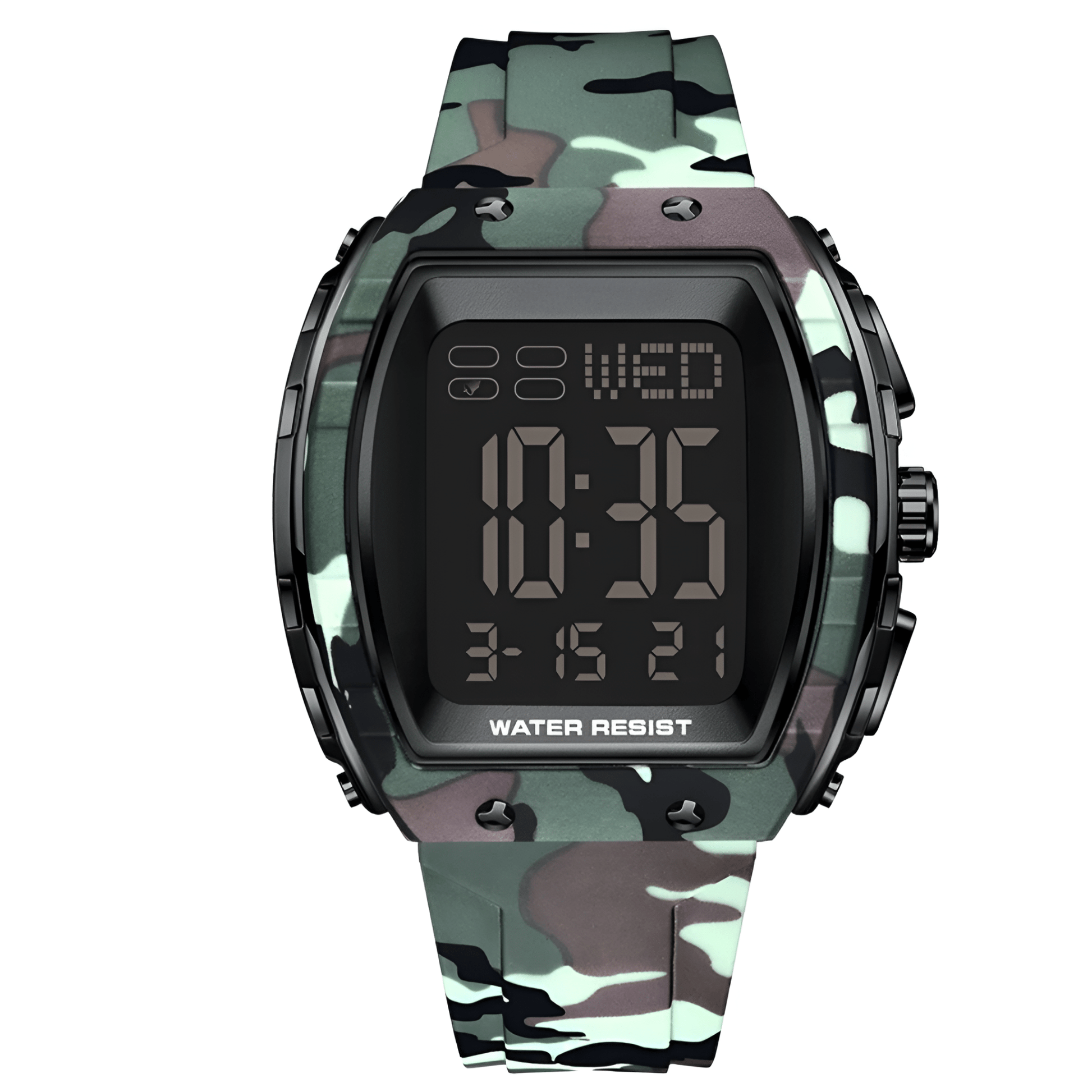 Built for adventure, this watch combines a bold camouflage design with high-performance durability. Whether you're in the urban jungle or the great outdoors, it’s made to keep up with your active lifestyle. Stay on time, stay ahead, and embrace the rugged spirit.