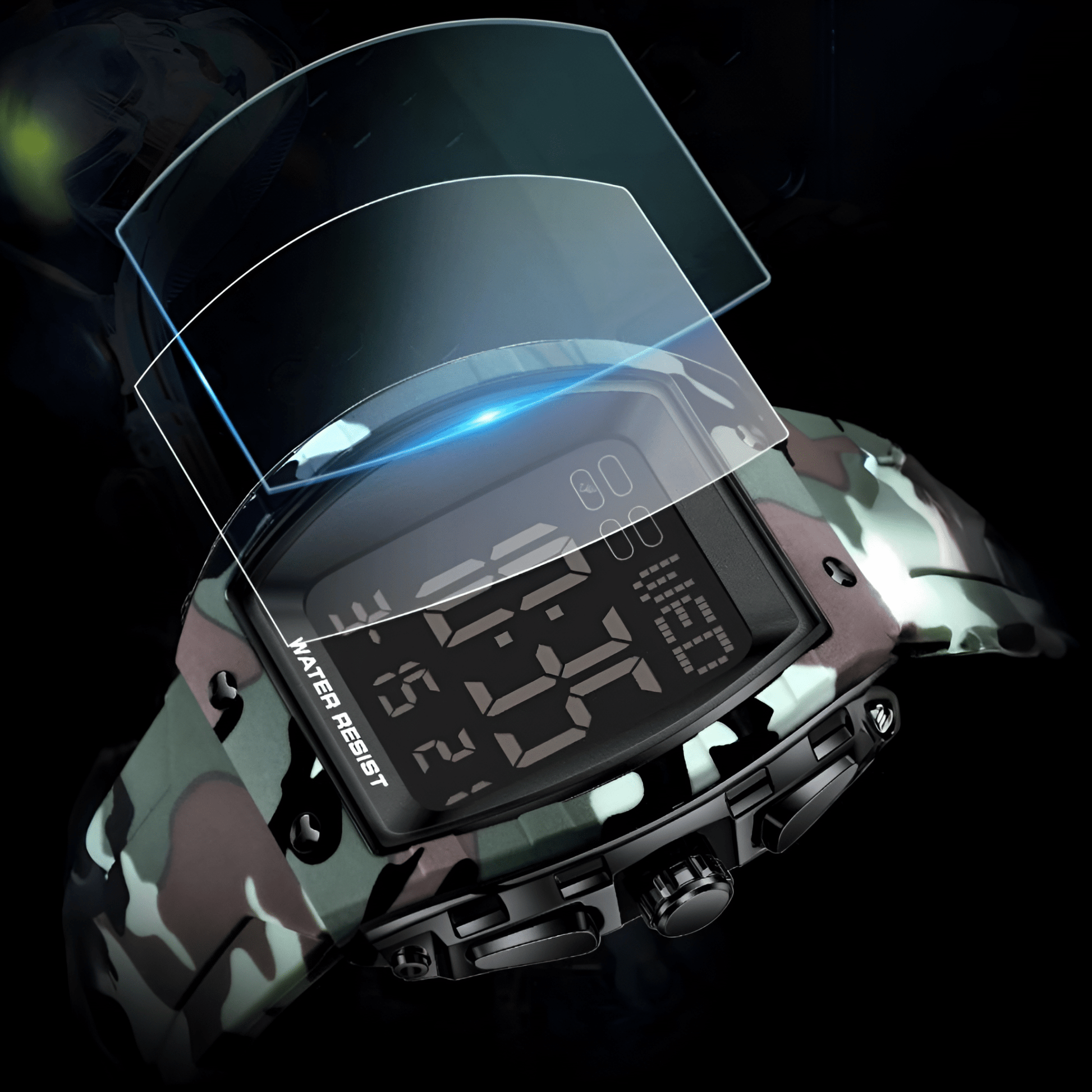 With its sleek digital display and sturdy construction, this watch is more than just an accessory—it’s a tool. Featuring a water-resistant build and tactical design, it ensures reliability in any environment. No matter the challenge, this timepiece is ready.