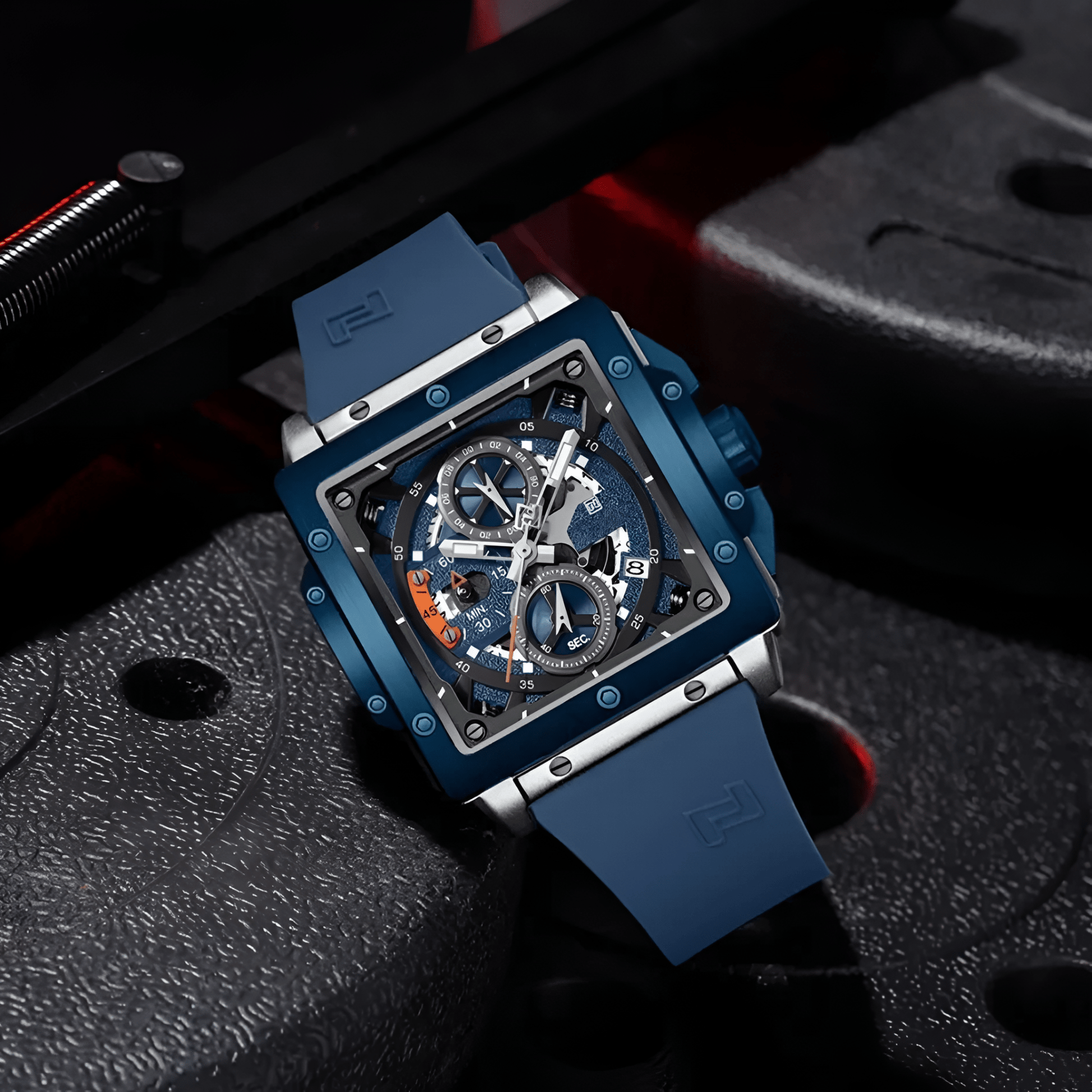The OXIDORE luxury quartz wristwatch is crafted for those who appreciate both elegance and functionality. With a sleek square alloy case and a 44mm dial diameter, this watch combines a bold design with durable materials. The Hardlex dial window offers enhanced scratch resistance, ensuring the watch remains clear and pristine even with daily wear.