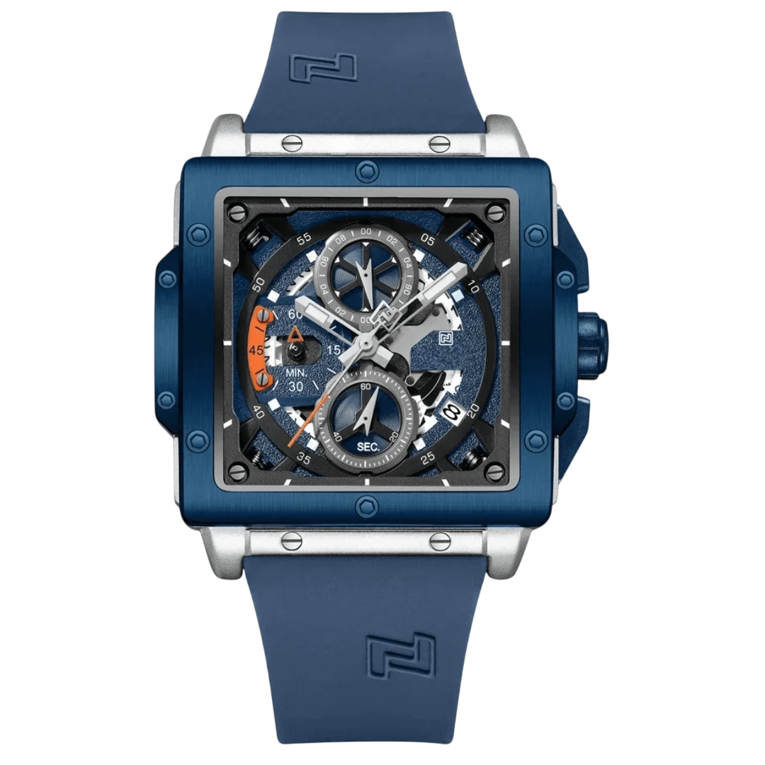 The OXIDORE luxury quartz wristwatch is crafted for those who appreciate both elegance and functionality. With a sleek square alloy case and a 44mm dial diameter, this watch combines a bold design with durable materials. The Hardlex dial window offers enhanced scratch resistance, ensuring the watch remains clear and pristine even with daily wear.