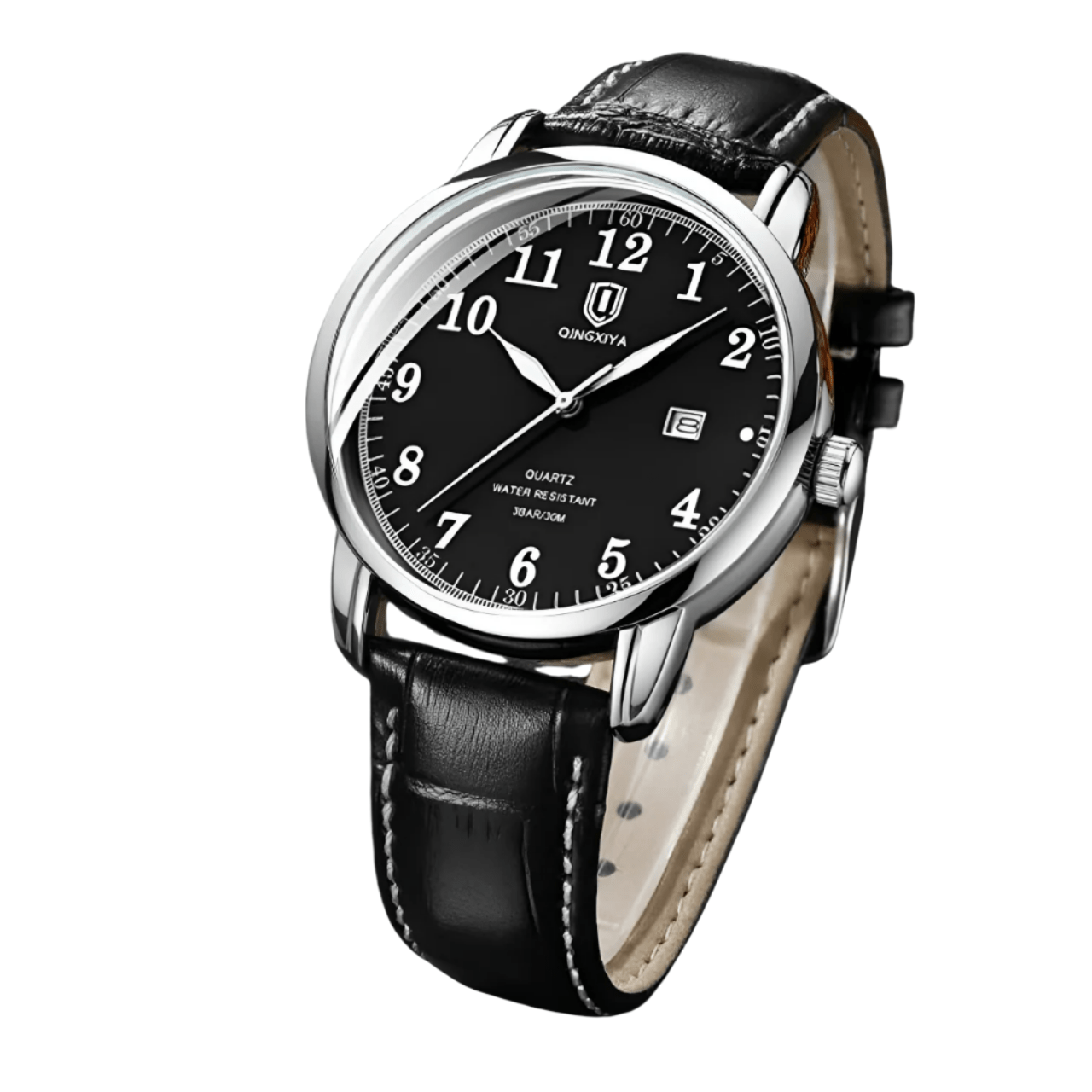 • Materials: Stainless steel case & Leather Strap, 3 Bar water resistance