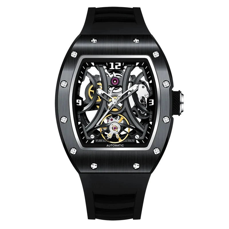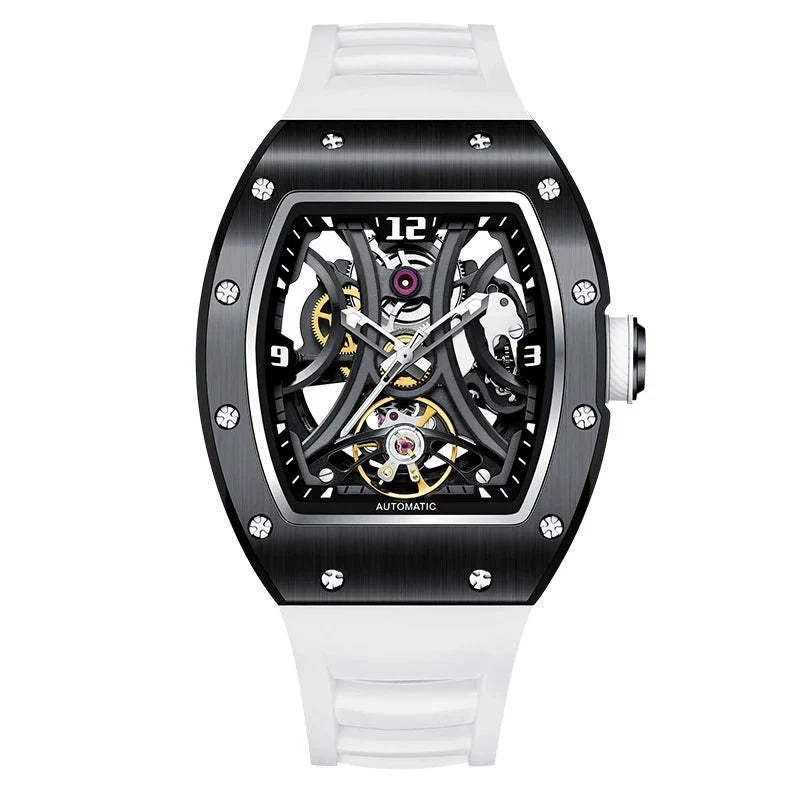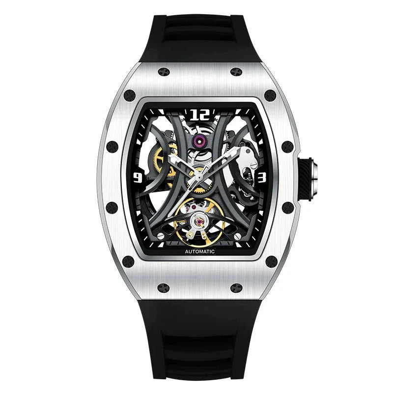 With its striking skeleton dial and intricate mechanical movement, this watch is an art form in motion. The architectural case, refined finishes, and visible gears create a mesmerizing depth that speaks to true watch connoisseurs. Each detail is carefully designed for a perfect harmony of strength and elegance, making it an unmistakable symbol of modern luxury.
