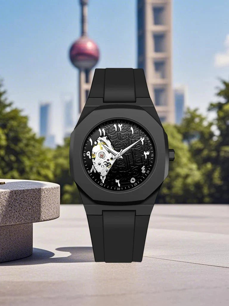 In a world driven by speed and noise, this timepiece invites you to slow down and feel. With a dial etched in poetic Arabic calligraphy and a glimpse into the mechanical heart within, it’s more than a watch—it’s a quiet rebellion against the ordinary. Each glance at your wrist becomes a moment of reflection, a reminder of your story, your path, your time.