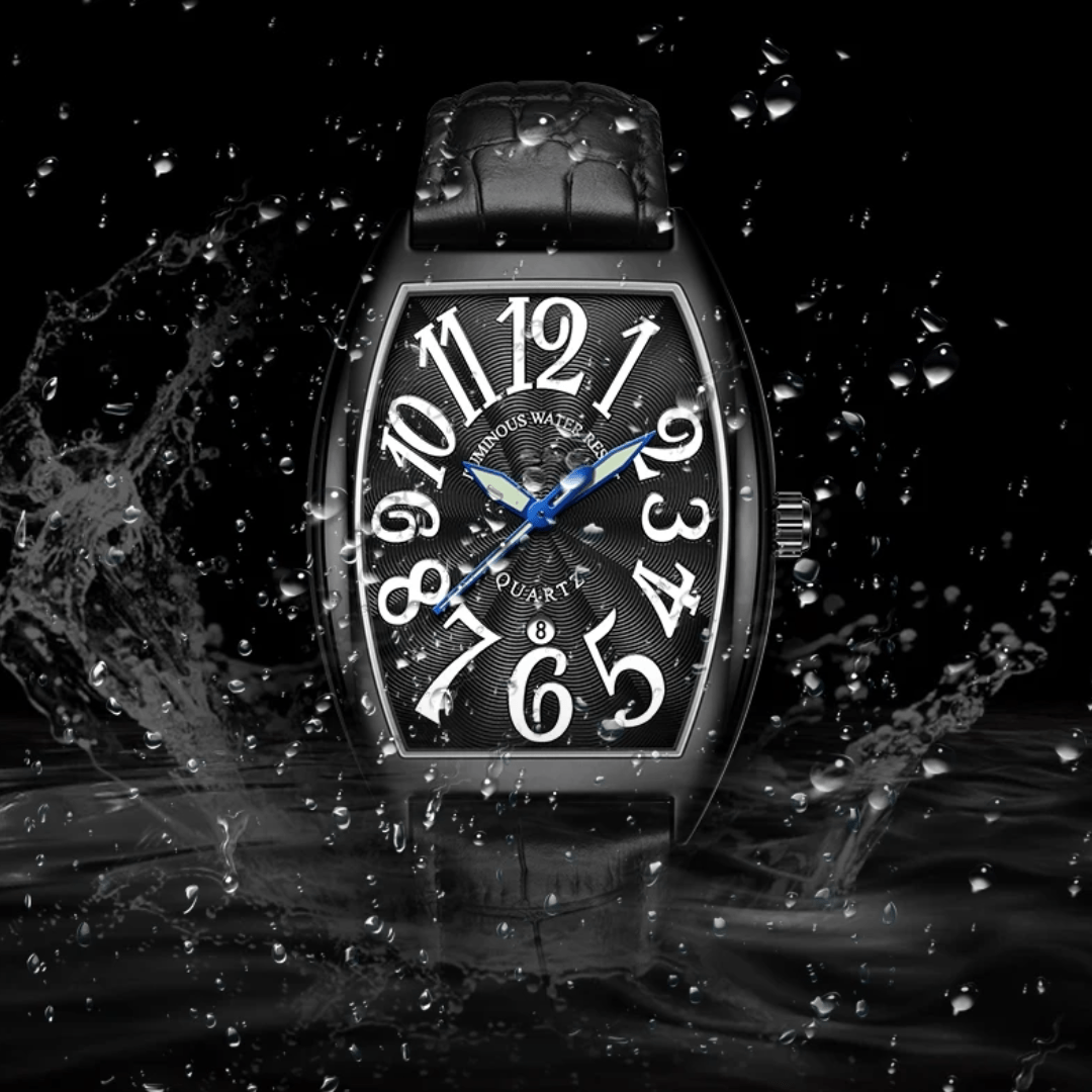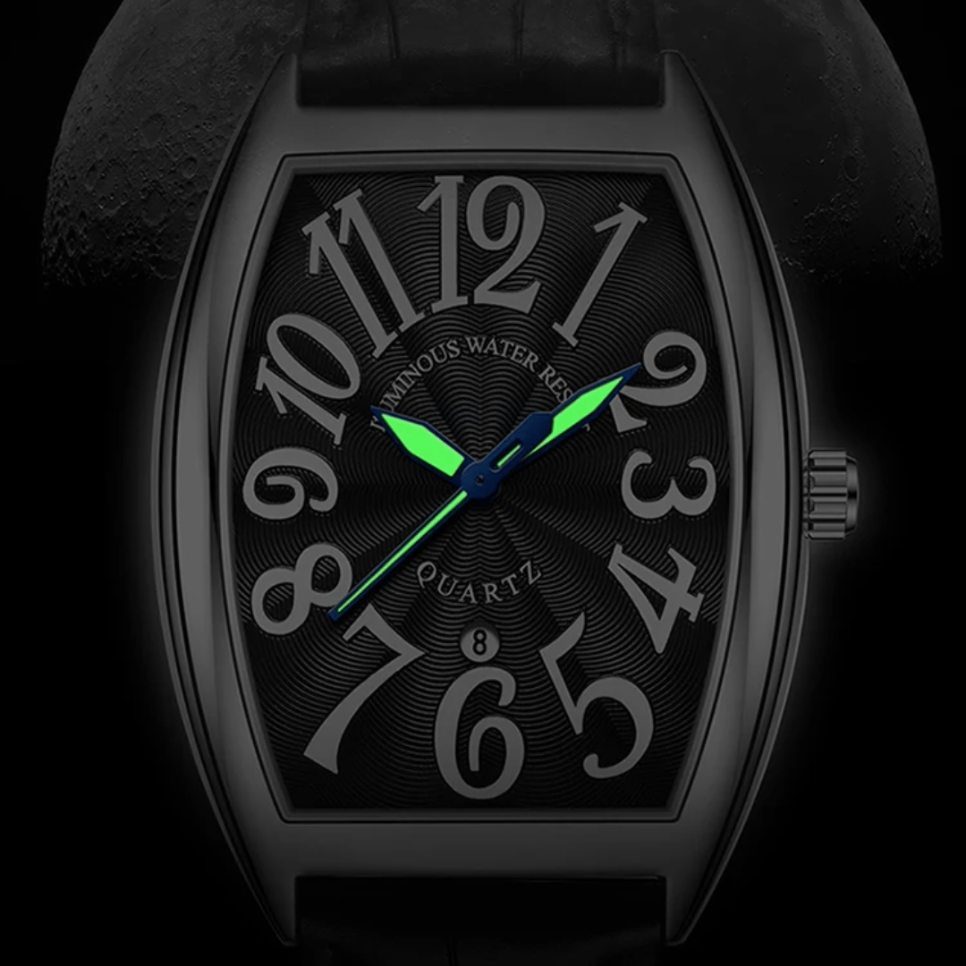 This stylish fashion and casual watch combines a durable leather band with a 43mm alloy case, offering a sleek yet robust design. Its 16mm case thickness and 22mm band width add to its bold profile, while features like shock resistance, water resistance, and luminous hands ensure it’s ready for any occasion. The reliable quartz movement and automatic date display make it a functional and fashionable choice, secured with a classic buckle clasp for a comfortable fit.